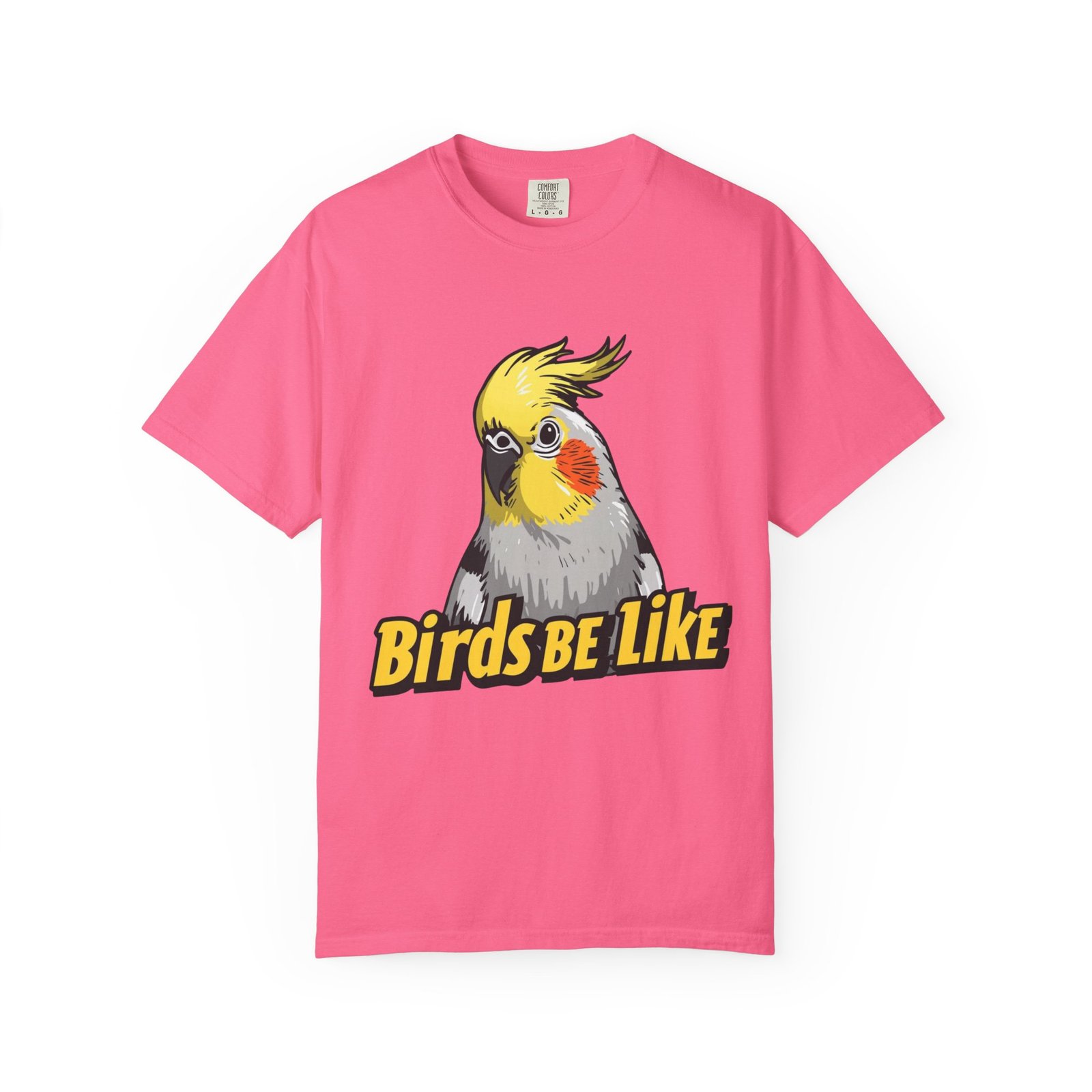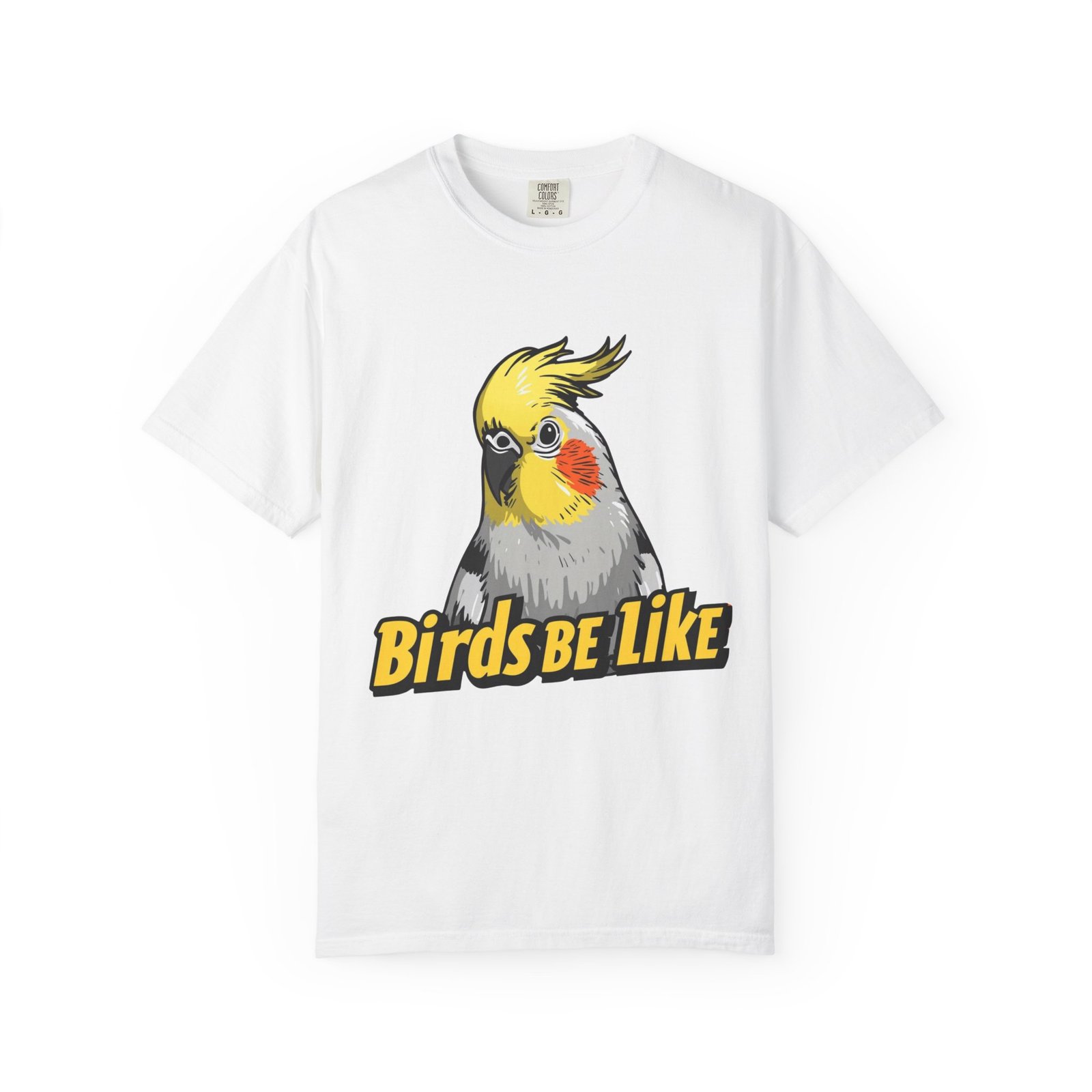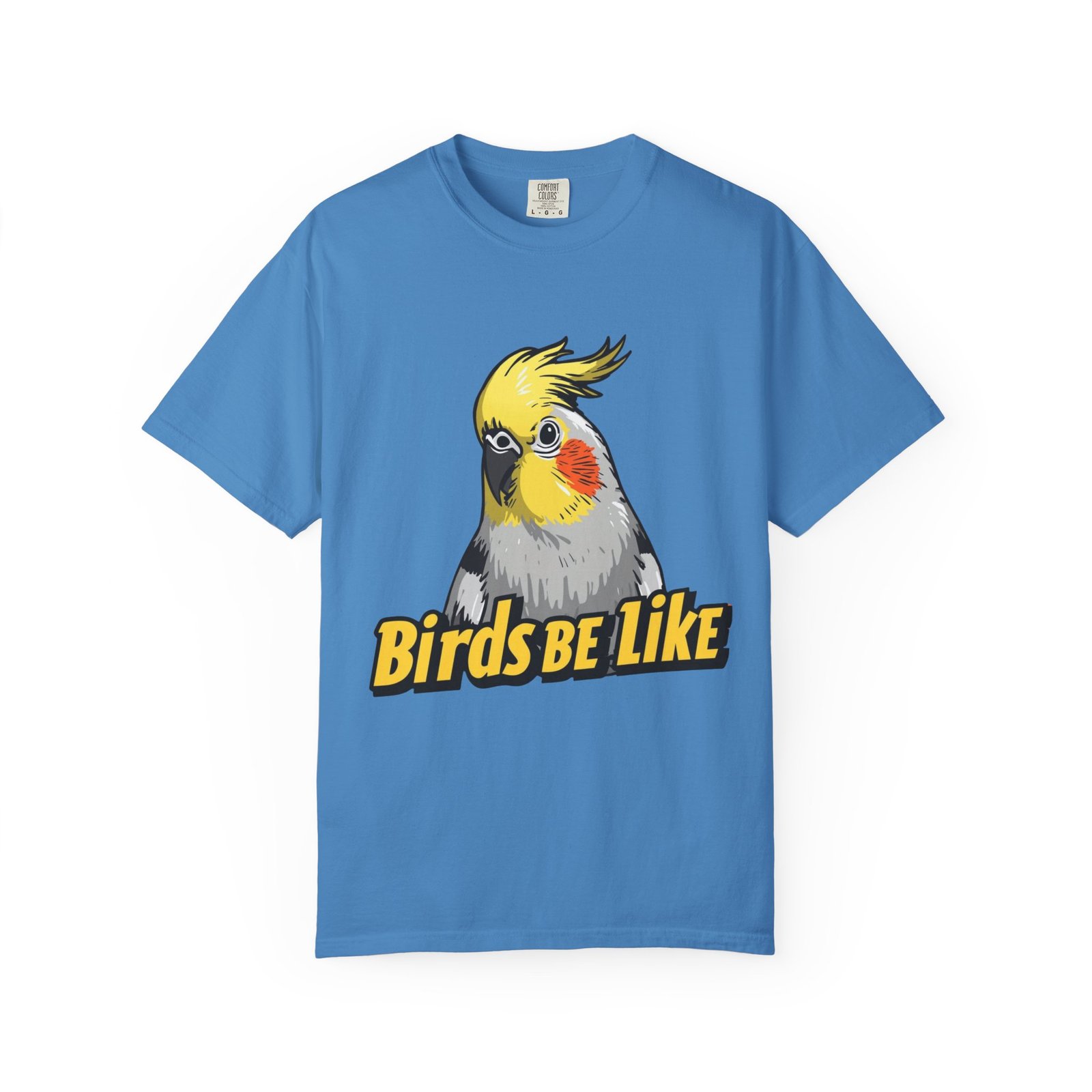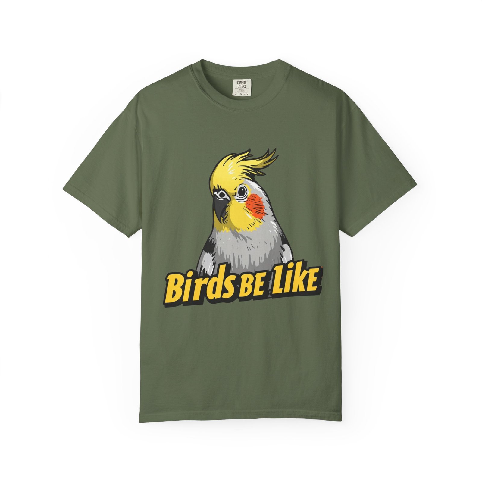 Lightweight, lived-in comfort with a wink of bird-brained humor. This garment-dyed tee feels soft from the first wear and carries a bold, illustrated cockatiel and playful “Birds Be Like” text across the chest. It sits relaxed without clinging, so it layers easily under a flannel or stands alone on warm days. Wear it while tending to your flock, running errands, or lounging with your favorite feathered friend — it brings small, everyday joy and a little birdwatcher swagger to ordinary moments.