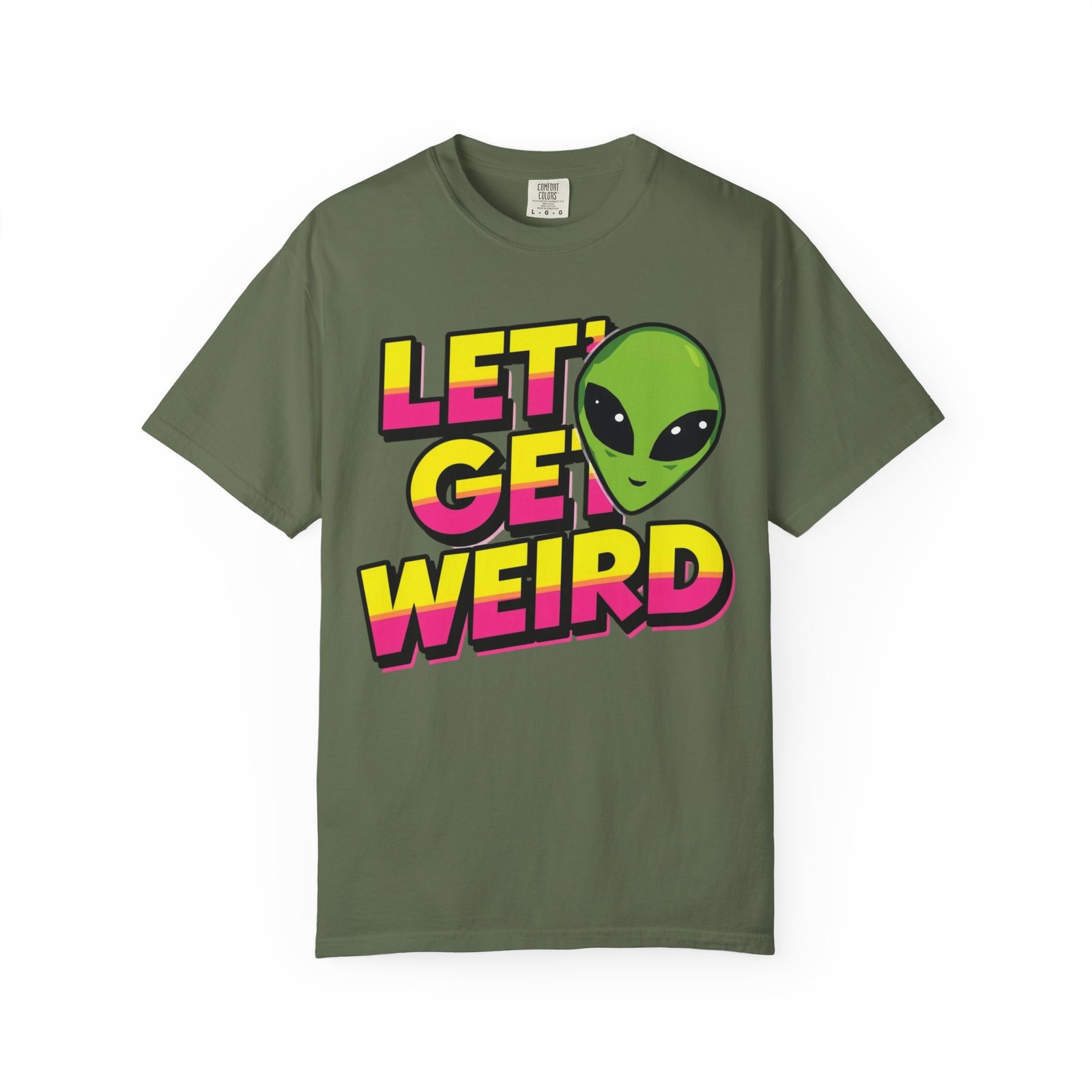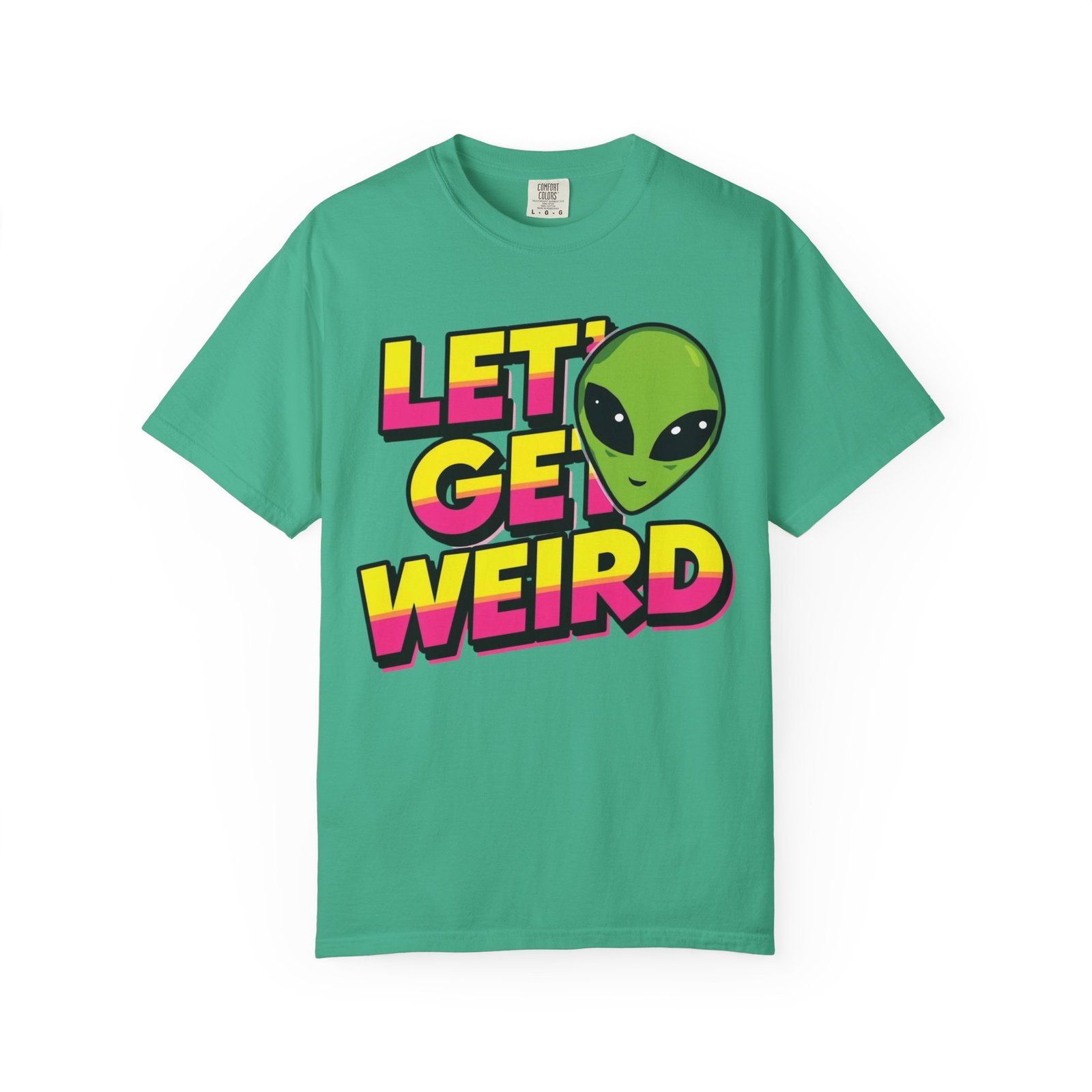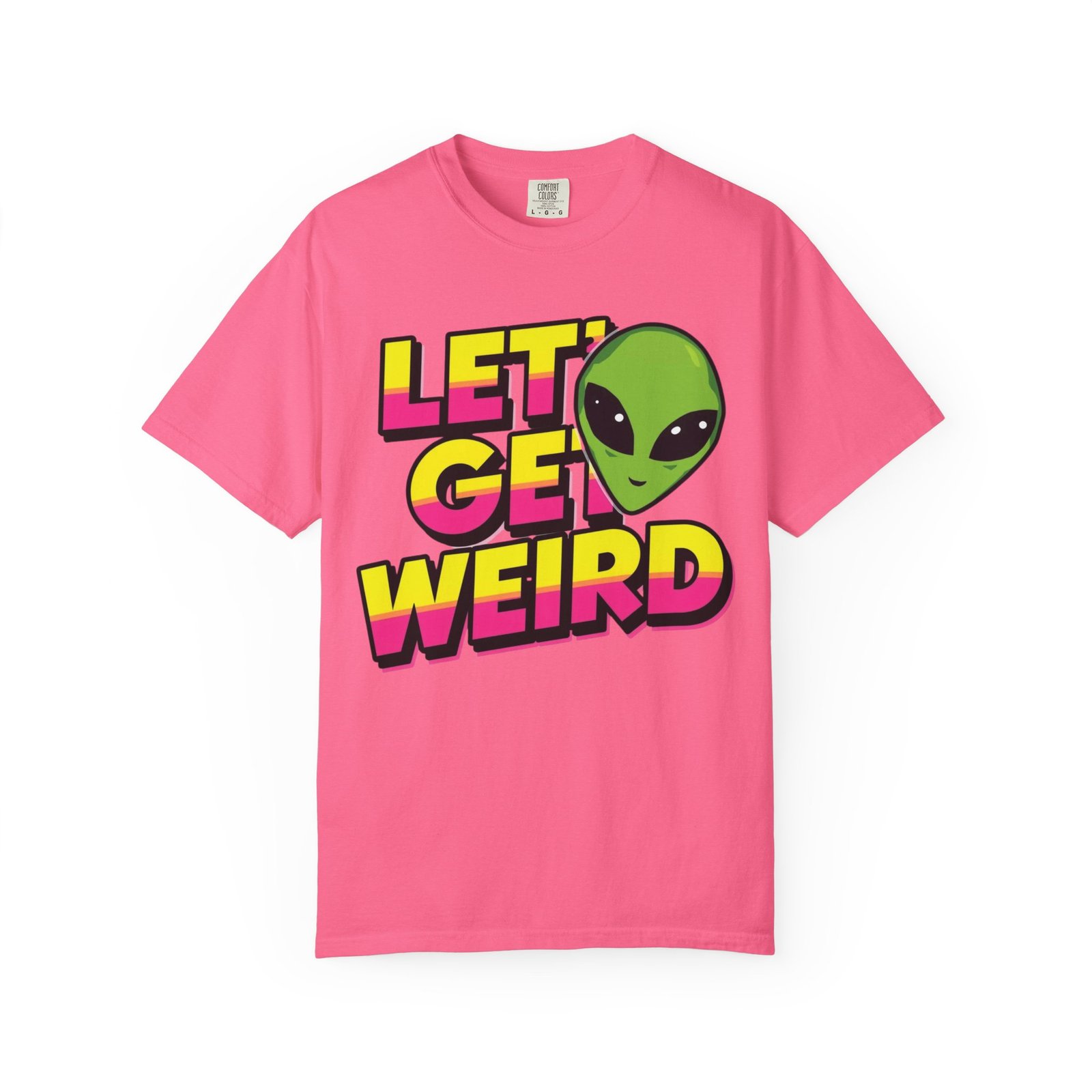 Elevate your casual wardrobe with this vibrant Unisex Garment-Dyed T-shirt. Featuring a playful “Let’s Get Weird” design, this tee radiates fun and creativity—perfect for those who love to express their unique personality. Crafted from 100% ring-spun cotton, it offers superior comfort and a relaxed fit, making it a go-to piece for everyday adventures or laid-back hangouts. Ideal for festivals, gatherings, or just a casual day out, this shirt perfectly suits anyone looking to add a dash of quirky flair to their style. With a variety of 58 colors available, it’s easy to find the perfect hue for any occasion, whether it’s a birthday celebration, a casual meet-up with friends, or simply embracing your inner eccentricity.